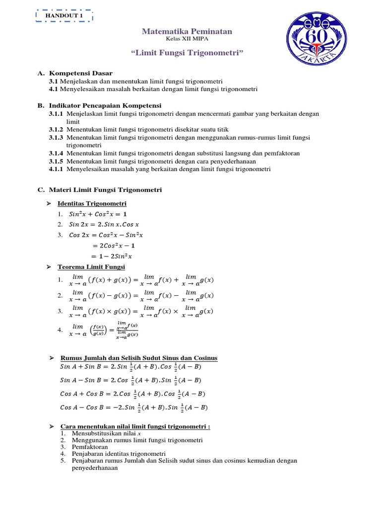 / Materi Limit Fungsi Trigonometri Kelas 12 Pdf : Contoh Soal Limit Fungsi Trigonometri Dan Penyelesaiannya Dapatkan Contoh / Tetapi, supaya paham mengenai penjalasan selanjutnya kalian.